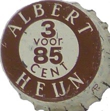| Tekst op de kroonkurk | Albert Heijn 3 voor 85 Cent |