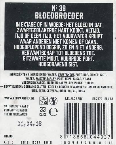 | Biernaam op etiket | Bloedbroeder No 39 |