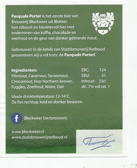 | Biernaam op etiket | Pasquale Porter |