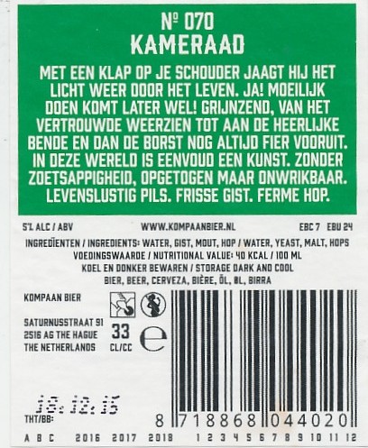 | Biernaam op etiket | Kameraad No 070 |