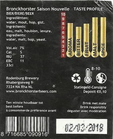 | Biernaam op etiket | Bronckhorster Saison Nouvelle |