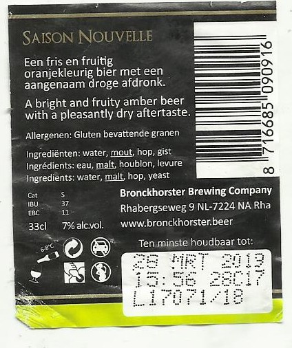| Biernaam op etiket | Saison Nouvelle |