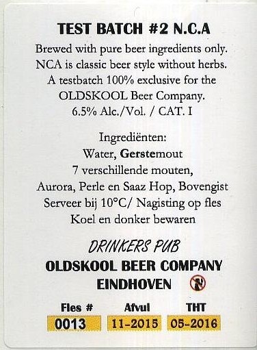 | Biernaam op etiket | Test Batch #2 N.C.A. |