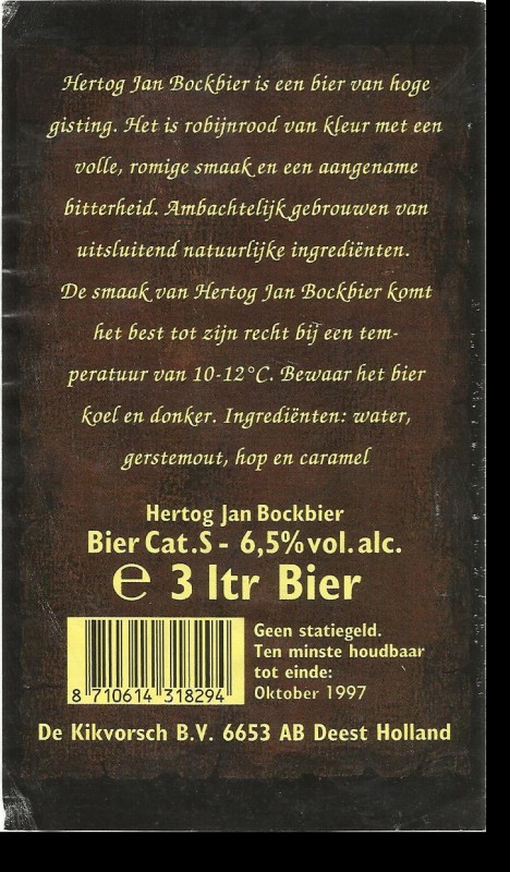 | Biernaam op etiket | Hertog Jan Bockbier |
