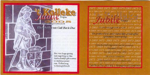 | Biernaam op etiket | 't Kolleke Jubilé Triple |