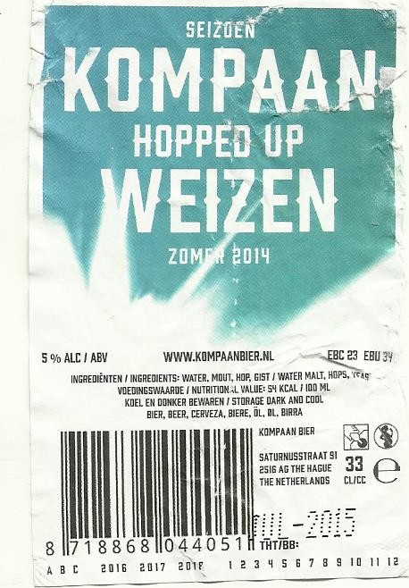 | Biernaam op etiket | Hopped Up Weizen Seizoen Zomer 2014 |