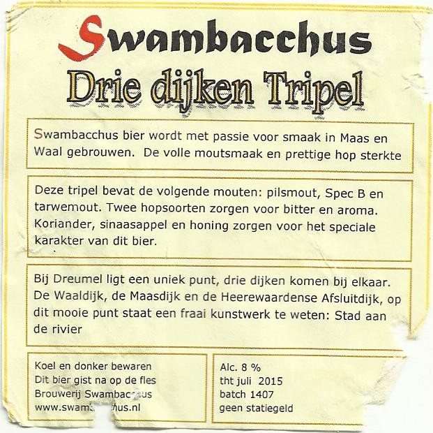 | Biernaam op etiket | Swambacchus Drie Dijken Tripel |