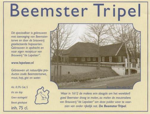| Biernaam op etiket | Beemster Tripel |