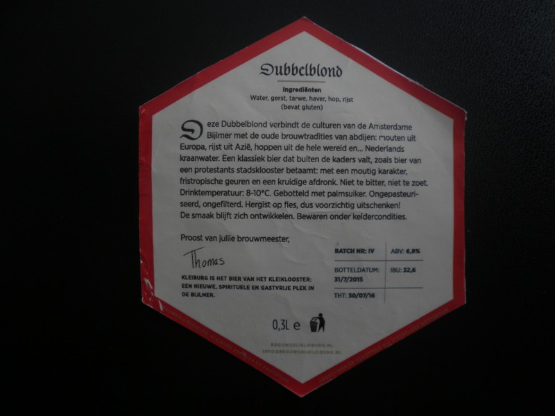| Omschrijving | botteldatum 31/7/2015 batch nr lV |