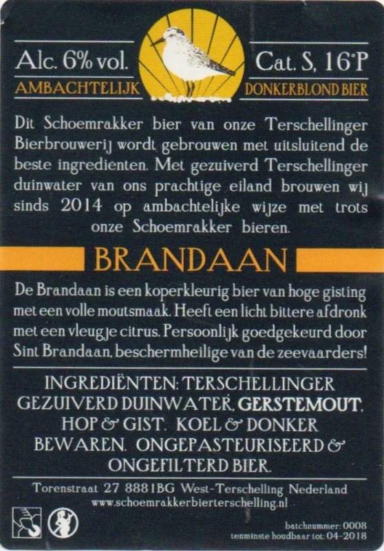| Brouwerij | Terschellinger Bierbrouwerij Schoemrakker |