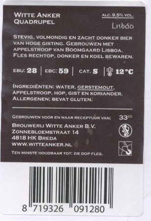 | Biernaam op etiket | Witte Anker Quadrupel |