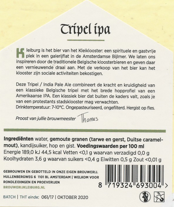 | Omschrijving | tht oktober 2020 batch 061/17 |