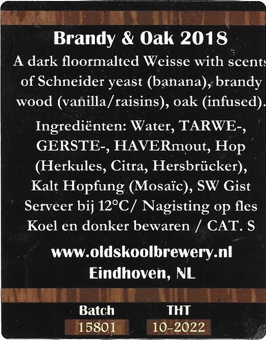 | Biernaam op etiket | Brandy & Oak 2018 |
