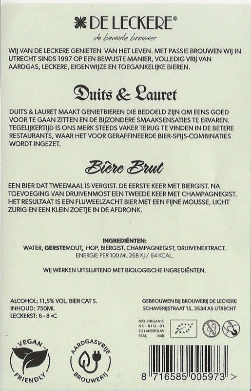 | Omschrijving | Collab - Bierbrouwerij De Leckere / Duits & Lauret |