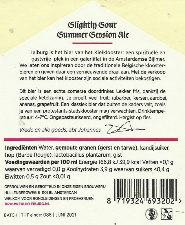 | Biernaam op etiket | Slightly Sour Summer Session Ale |