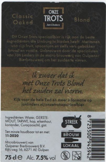 | Biernaam op etiket | Onze Trots Blond Classic Oaked |