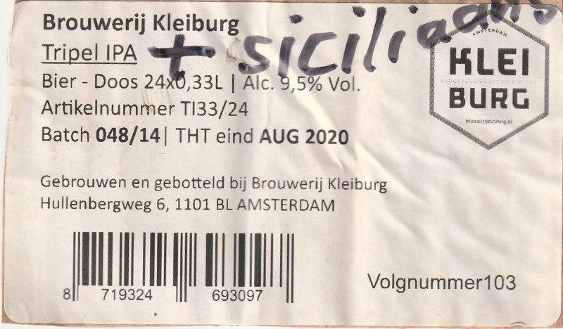 | Biernaam op etiket | Tripel IPA x Siciliaans |