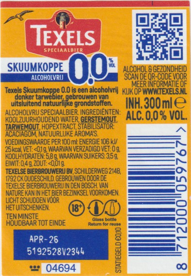 | Biernaam op etiket | Texels Skuumkoppe 0.0 |