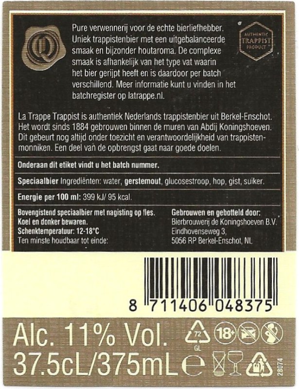 | Biernaam op etiket | (La Trappe Trappist Oak Aged) |