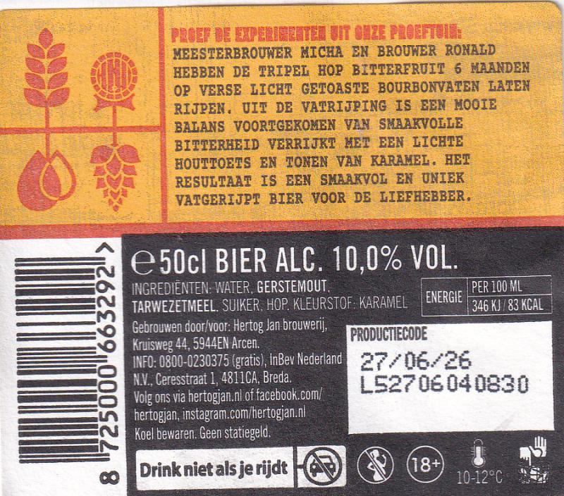 | Biernaam op etiket | Vatgerijpt Tripel Hop Bitterfruit |