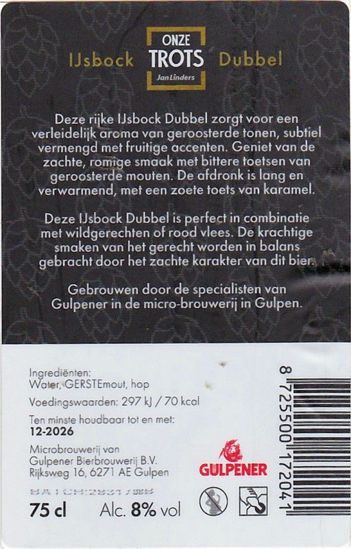 | Biernaam op etiket | Onze Trots IJsbock Dubbel |