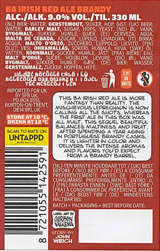 | Biernaam op etiket | ( Lucky Leprechaun ) BA Irish Red Ale Brandy |