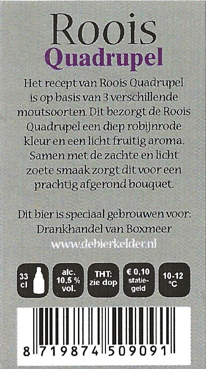 | Biernaam op etiket | Roois Quadrupel |