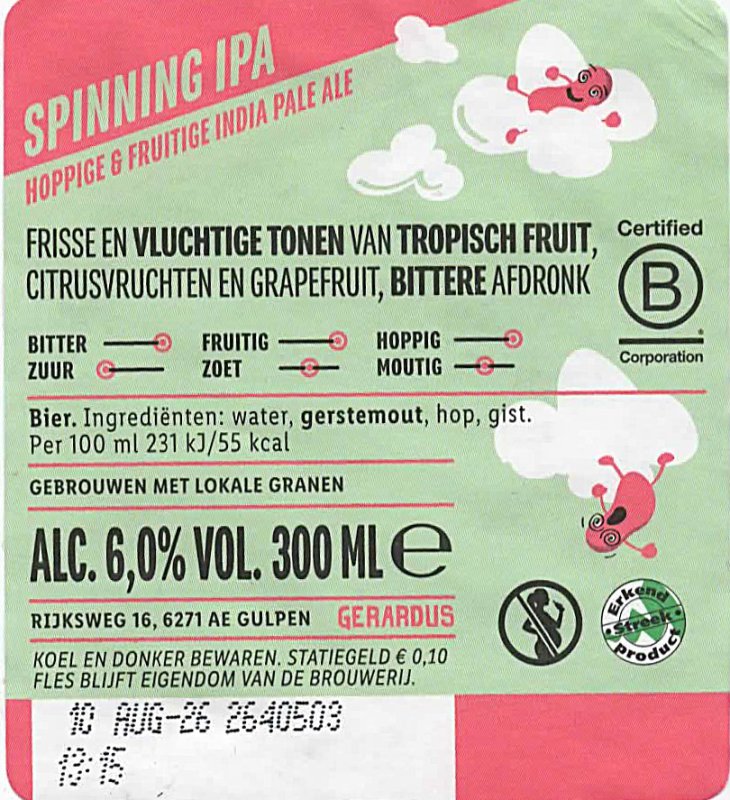 | Biernaam op etiket | (Zwenkende Zweefmolen) Spinning IPA |