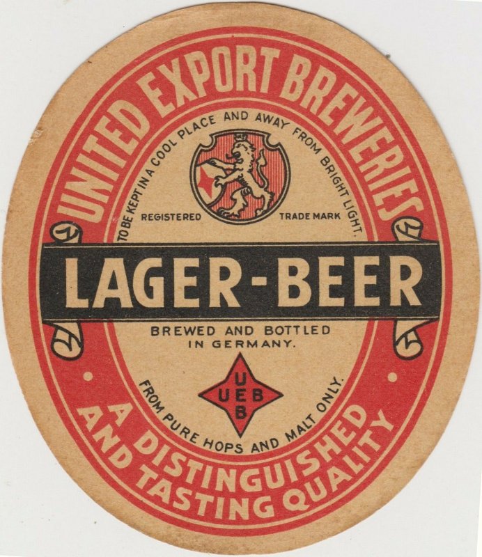 | Omschrijving | United Export Breweries A Distinguished and tasting quality Brewed and bottled in Germany (Phoenix voor Duitse opdrachtgever) |