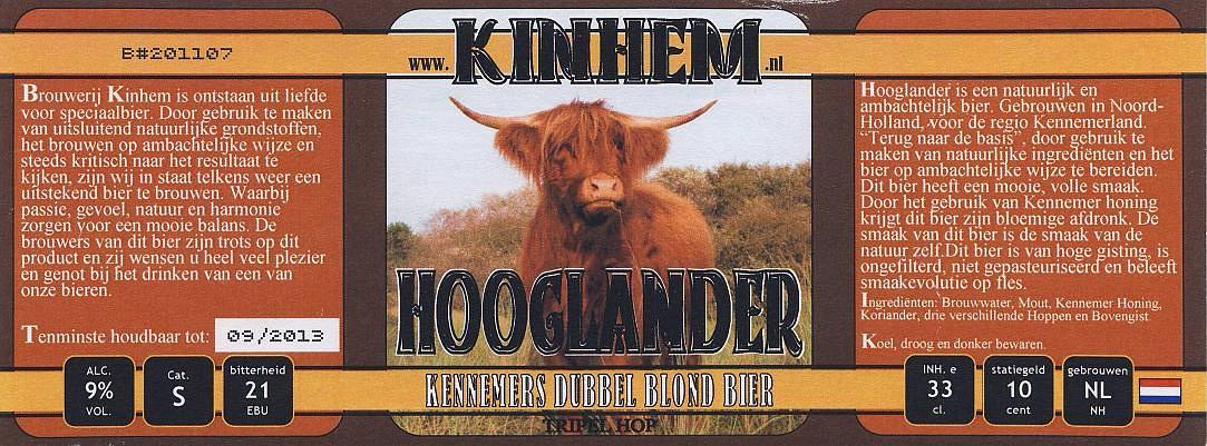 | Biernaam op etiket | Hooglander Kennemers Dubbel Blond Bier Tripel Hop |