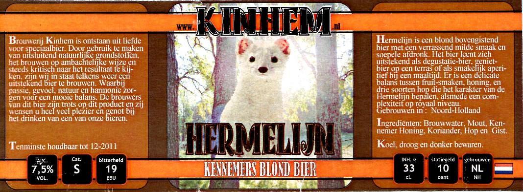 | Biernaam op etiket | Hermelijn Kennemers Blond Bier |