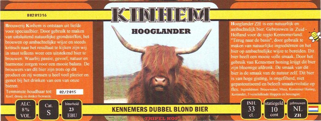 | Biernaam op etiket | Hooglander Kennemers Dubbel Blond Bier Tripel Hop |