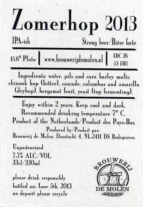 | Biernaam op etiket | Zomerhop 2013 IPA-ish |