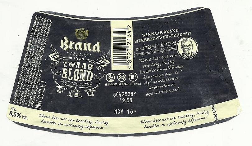 | Biernaam op etiket | Brand Zwaar Blond |