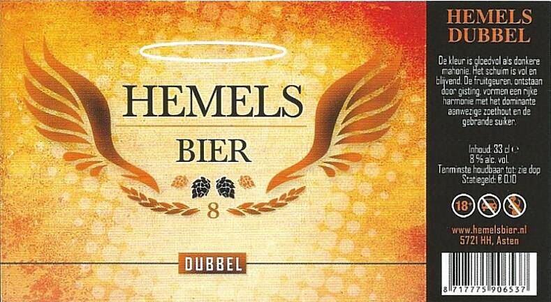 | Biernaam op etiket | Hemels Bier Dubbel |