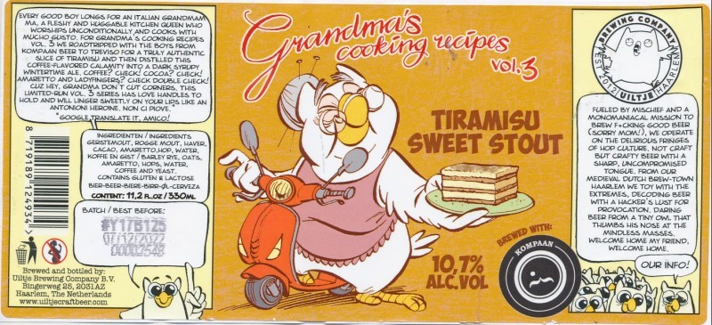 | Biernaam op etiket | Grandma's Cooking Recipes Vol. 3 Tiramisu Sweet Stout |