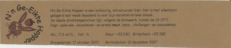 | Biernaam op etiket | N'n Ge-Eikte Hopper |
