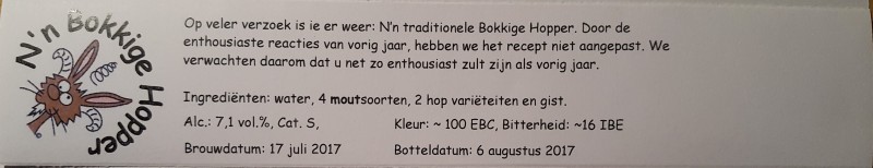 | Biernaam op etiket | N'n Bokkige Hopper |