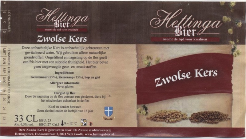 | Brouwerij | De Zwolse Stadsbrouwerij Hettingabier |