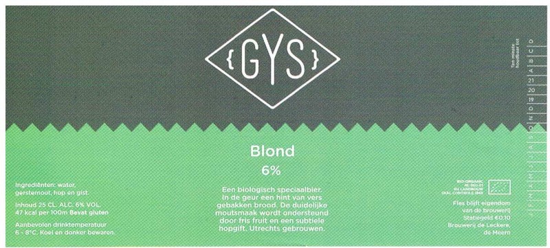 | Biernaam op etiket | Gys Blond |