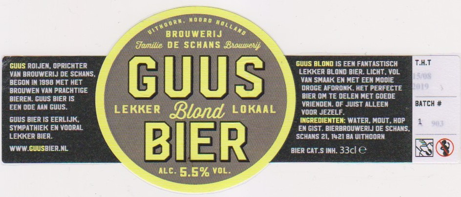 | Biernaam op etiket | Guus Bier Blond |
