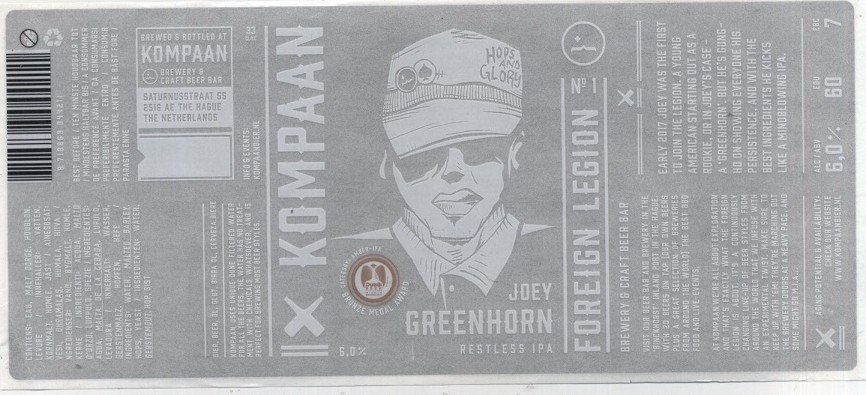 | Biernaam op etiket | Joey Greenhorn |