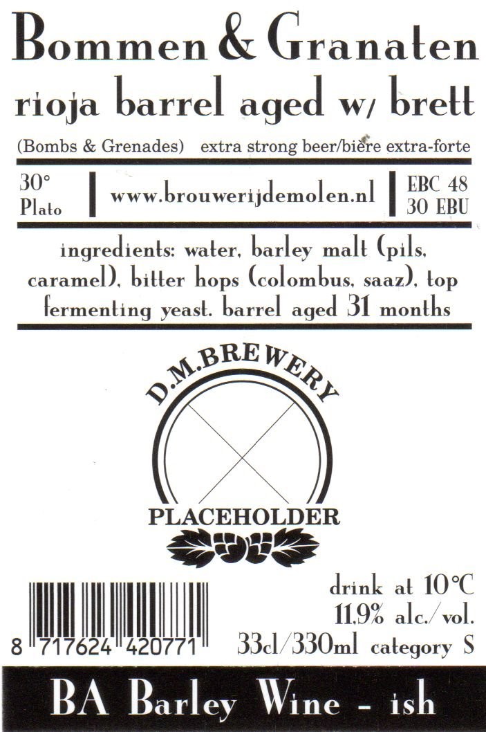 | Biernaam op etiket | Bommen & Granaten BA Barley Wine-ish |