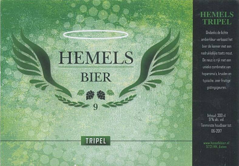 | Biernaam op etiket | Hemels Bier Tripel |