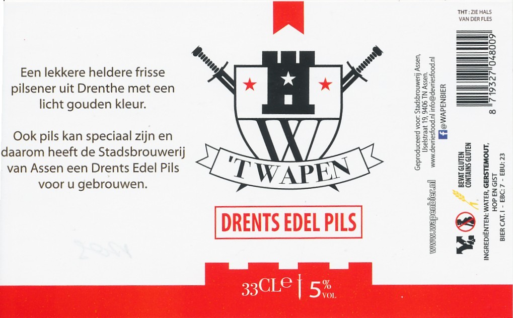 | Biernaam op etiket | 't Wapen Drents Edel Pils |
