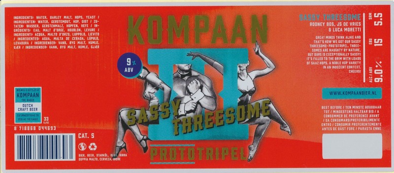| Biernaam op etiket | Sassy Threesome Prototripel |