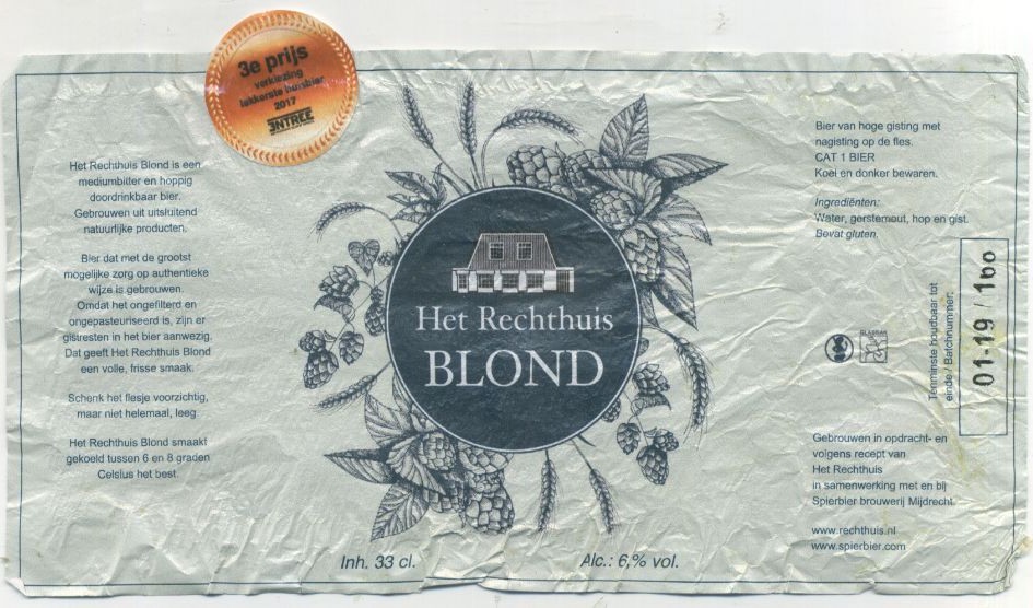 | Biernaam op etiket | Het Rechthuis Blond |