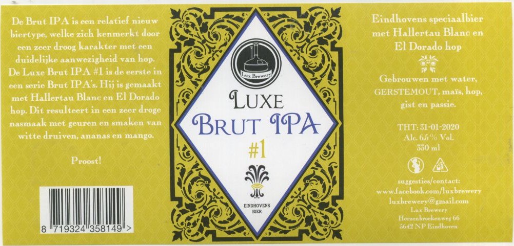 | Biernaam op etiket | Luxe Brut IPA #1 |