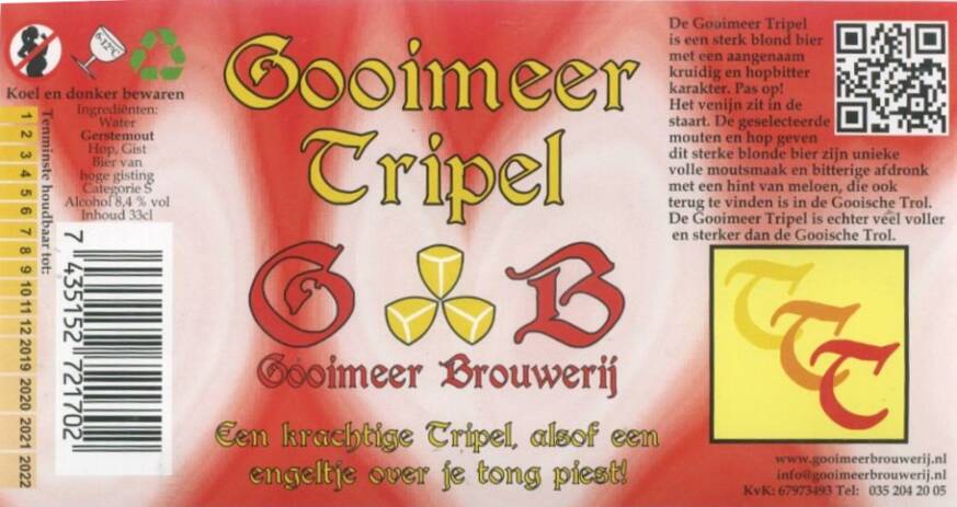 | Biernaam op etiket | Gooimeer Tripel |