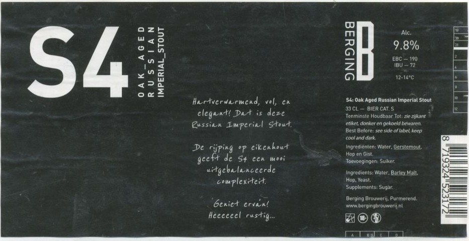 | Biernaam op etiket | S4 Oak Aged Russian Imperial Stout |